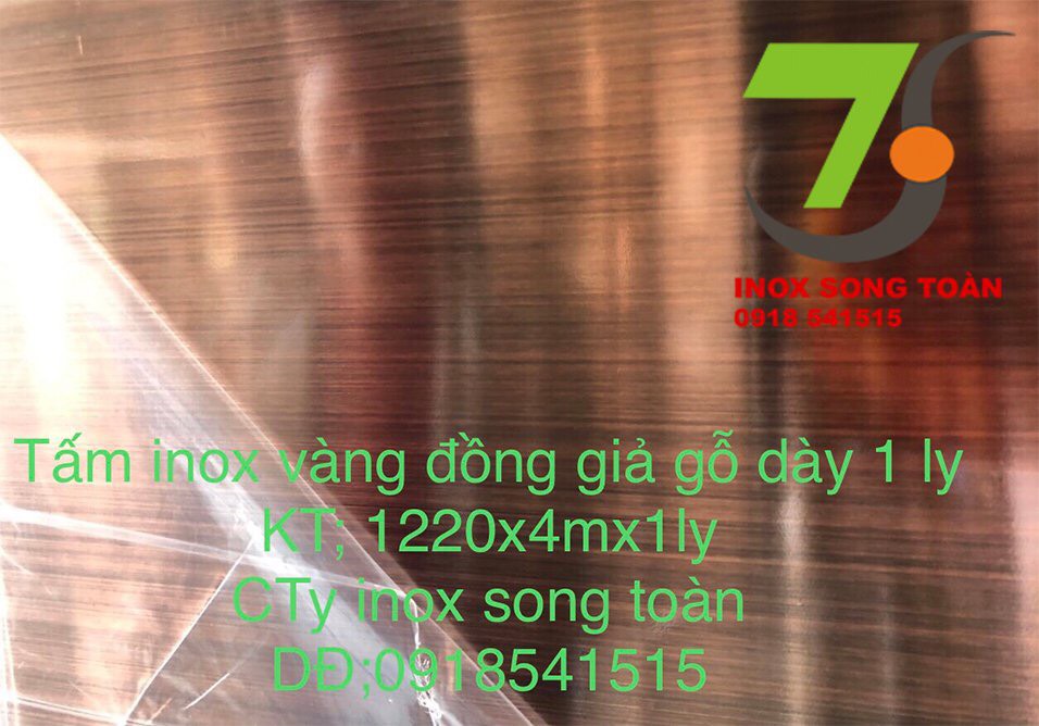 Tấm inox vàng đồng giả gỗ dày 1 ly